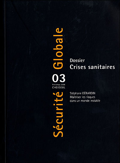 «Point de vue- Maîtriser les risques dans un monde instable (Stéphane Gérardin) Dossier : Crises sanitaires – Éthique et menace sanitaire (Yves Coquin) – Grippe aviaire et sécurité sanitaire : une problématique à l’échelle mondiale (Élisande Nexon) – Anticiper la » pandémie grippale » (François Bricaire) – Impacts économiques et sociétaux des actes terroristes, sous l’angle du bioterrorisme(Jan-Peter Paul) – Mondialisation de la résistance des bactéries aux antibiotiques : le risque d’une crise sanitaire majeure ? (Antoine Andremont) – Réflexions sur la notion de crise sanitaire (Sylvie Laporte) Varia – L’étude du terrorisme en France : une recherche encore embryonnaire (Lorraine Tournyol du Clos – Sébastien Tournyol du Clos) – Le Hezbollah libanais : du pragmatisme politique à la subversion par l’information (Briec le Gouvello) – La lutte contre le terrorisme, vecteur d’un renouveau de la pensée stratégique ? (Robert Hunter)»